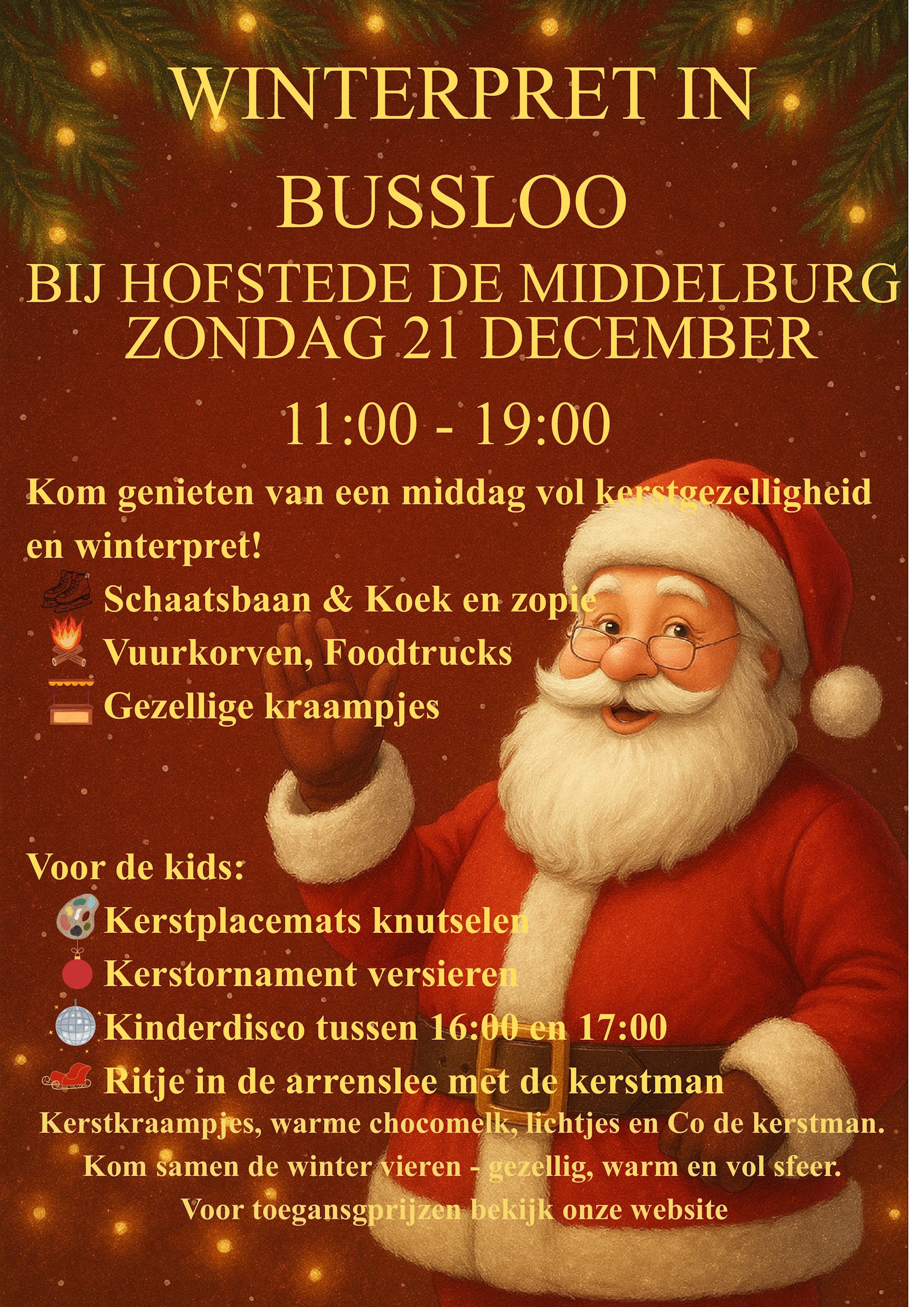 Kom op 21 december 2025 naar Hofstede de Middelburg, Bussloo voor een middag vol kerstgezelligheid en winterpret!